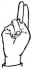 На ћирилици написано ПЕРИША КАРАЏИЋ састоји се из 13 слова [?]. Исписано ћириличном једноручном азбуком за глувонеме: